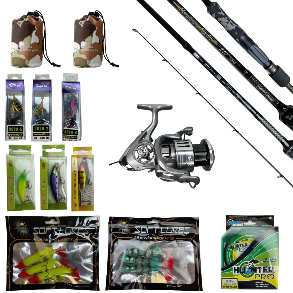 Включає вудлище, котушку, приманки та блешні – все необхідне для лову хижої риби.